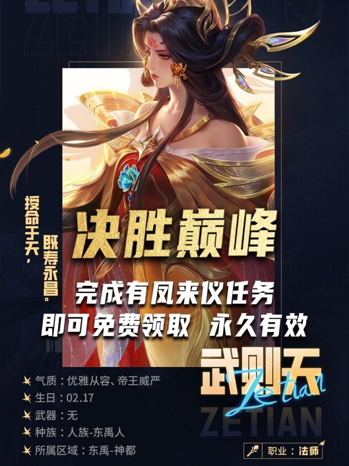 只需要完成武则天专属活动任务,就能领取该英雄!