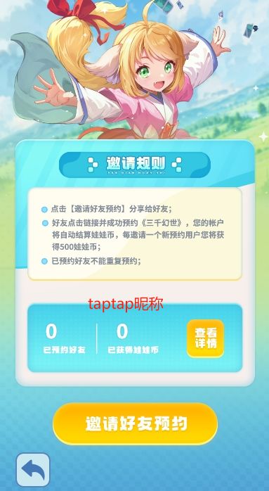而且,每邀请一位好友加入,就能获得额外的娃娃币 ,感觉距离大奖又近了一大步呢!大家快来踊跃参与吧 !![[TapFamily1_吸吸欧气]](https://img.tapimg.com/market/images/b465475248f7f59c56da65dddeca5ebf.gif)