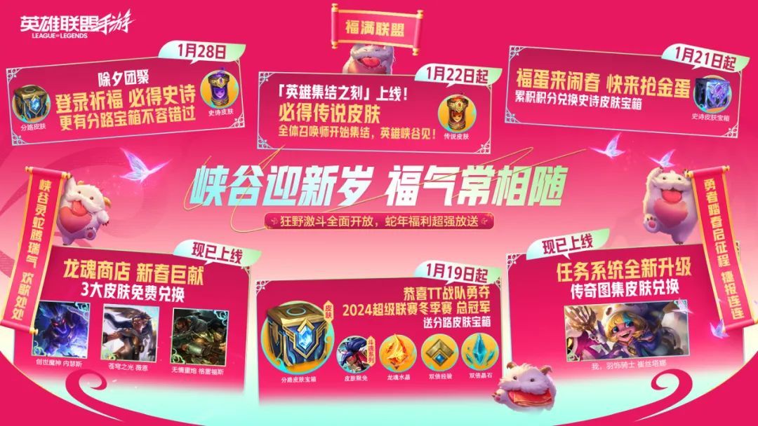 《英雄联盟手游》新春福利大放送啦!召唤师们快来峡谷迎新年,福气满满哦~