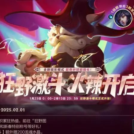 不仅如此,即日起,截止至2月1日完成3局狂野激斗模式即可获得龙魂水晶*200奖励~