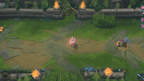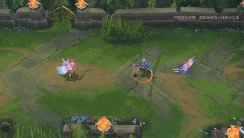 施放技能后,霞的手掌充斥粉紫色能量,后3次普攻将命中沿途所有敌人,攻击落点处留下了可供召回的粉紫色羽毛。
