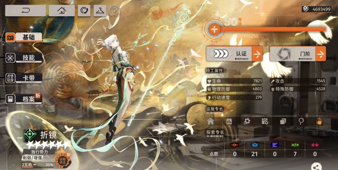 夜来和组长的回能技能在保证主C如默斐的超限技前提下,可以适当给到折镜。由于有减伤的存在,折镜可以放在2/3号位,通过承伤来加快能级回复。