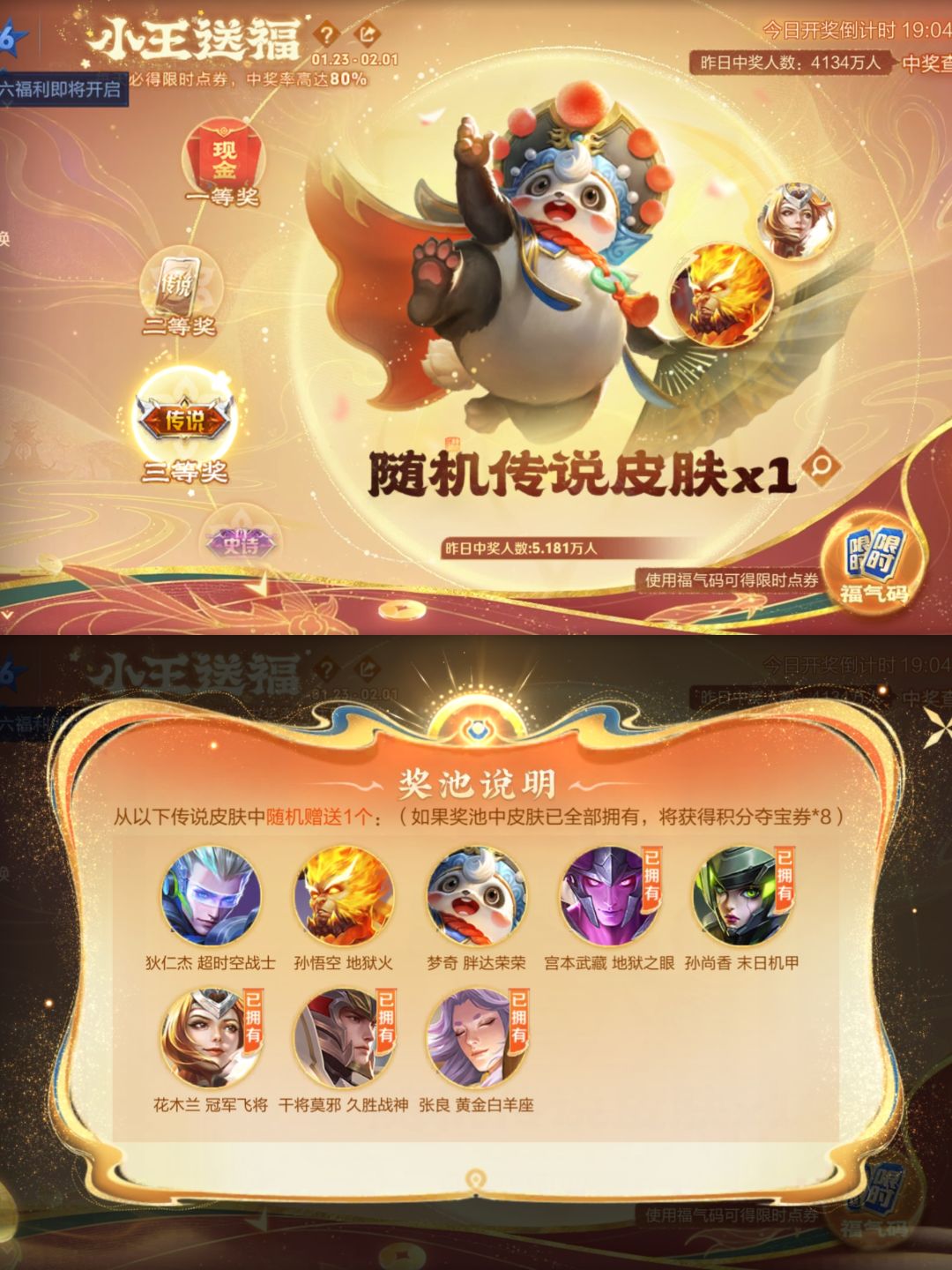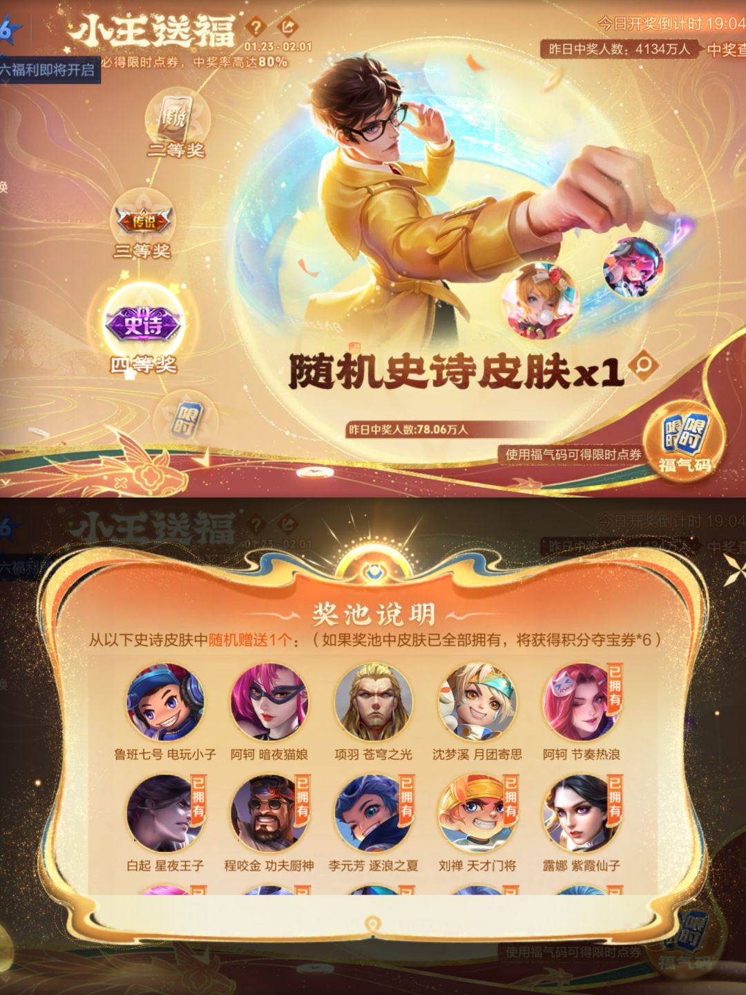 (本人已中奖)随机史诗或者传说皮肤优先获得没有的