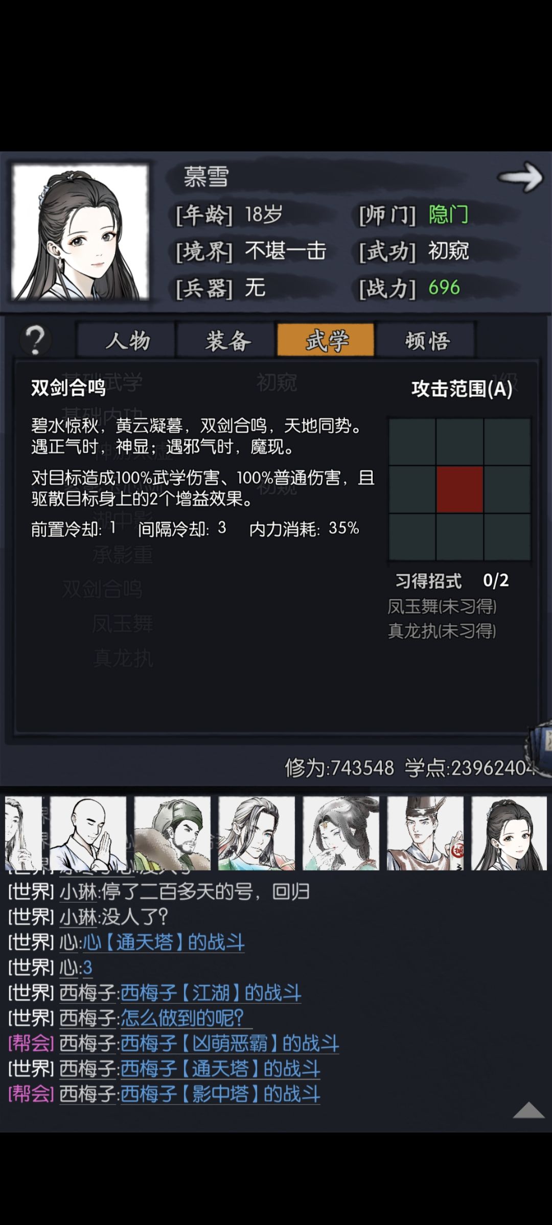 最后就是感觉,新侠客也没有超模的强,如果当主c的话,感觉会挺尴尬的,一技能打前排不太拿的出手,二技能,武学伤加普通伤害要打红字的话需要暴击和命中。