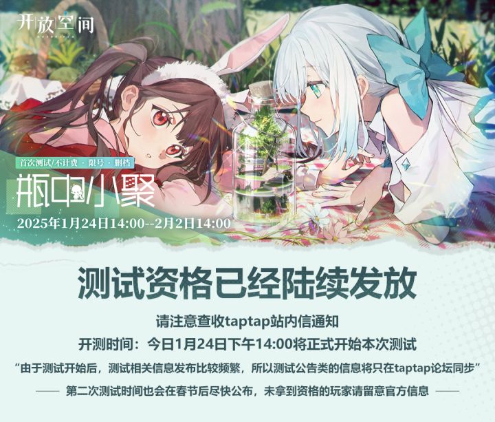 4. 「瓶中小聚」体验资格仅对本次测试有效。测试结束后游戏服务器将关闭,本次测试的所有游戏数据将会被清除,如有变化另行通知,请留意官方消息,谢谢大家。