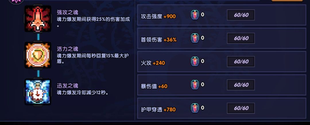 关卡需求:9320 护甲穿透,4460 元素穿透,150%暴击率 (自身面板加成 + 局内效果加成后至最终 BOSS 时满足上述要求即可,元素穿透不可将魂系减抗算入 )