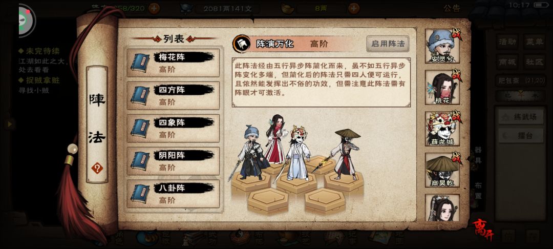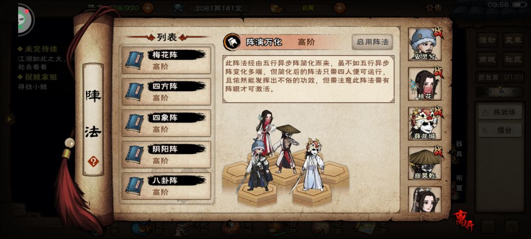 主c心音/离火/天元落,秘技寂寥意/啸风/活脉术,八段锦(需求240臂力,244身法)