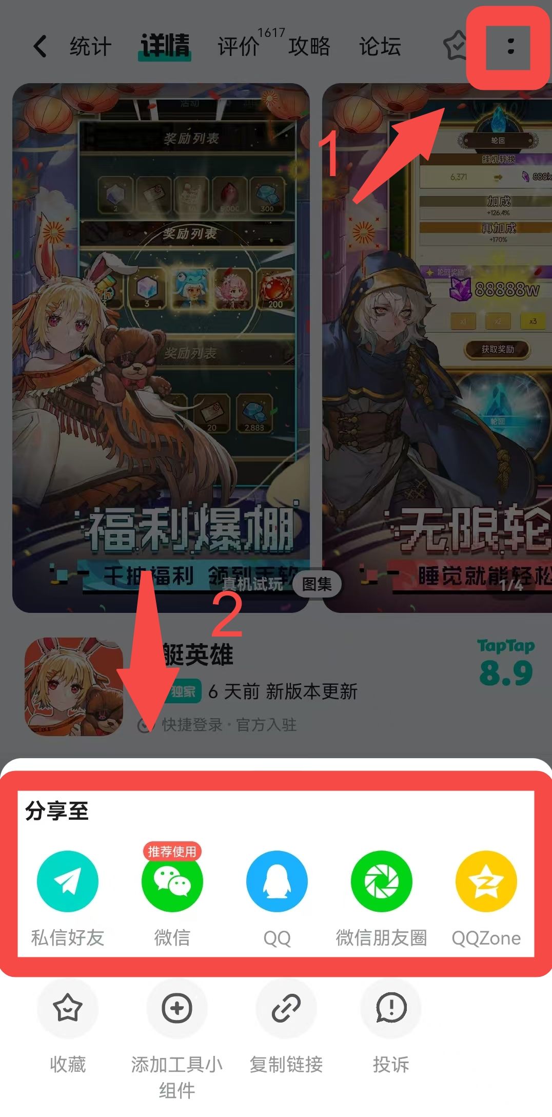 1、下载&关注游戏,然后分享《飞艇英雄》TapTap游戏主页至微信朋友圈/微信群/QQ空间/Q群(除飞艇英雄官方群)/微博/小红书/抖音/B站等其他社媒平台。