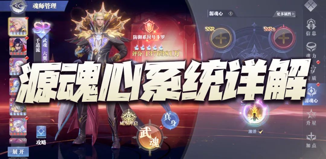 大家好,我是正在破费的何二维一。今天的攻略咱们来简单聊聊这个源魂心系统,虽然说这个东西的成本直到现在也非常夸张,但是官方目前推这个源魂心系统显然也是底气十足的,从之前的一系列操作来看,基本上所有的SP魂师都会上线陆续源魂心,所以未来源魂心也会成为官方承前启后的一个重要举措,因此客观说无论现在如何,未来源魂心这个东西还是会逐步普及到每一位玩家身上的,这也是今天维一决定写这篇攻略的一个初衷。