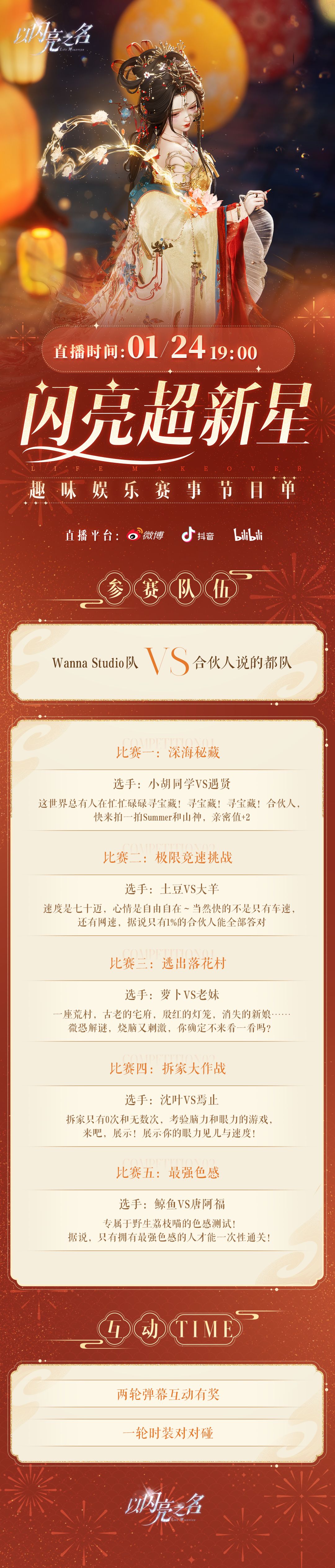 作为闪亮世界首届❗️激烈❗️奋发❗️拼搏❗️竞技❗️直播,想必合伙人们也看出来了,五个比赛环节,除了与野生荔枝喵息息相关,欢乐氛围也不能少!