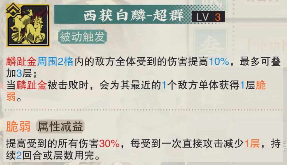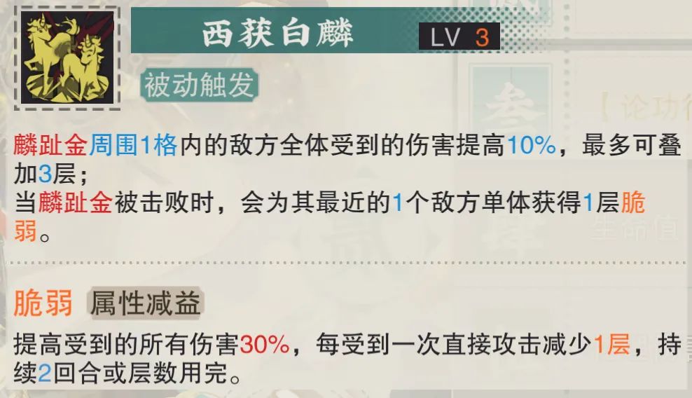 接着马蹄金的被动1技能可以部分提升麟趾金周边敌人的受伤提升效果,不过这个提升的幅度并不算很高。而即使在马蹄金提升到1致知之后,其提升也就是增伤覆盖范围的提升,这点倒是和铜壶1致知的提升幅度有些类似,只能算是开胃小菜。