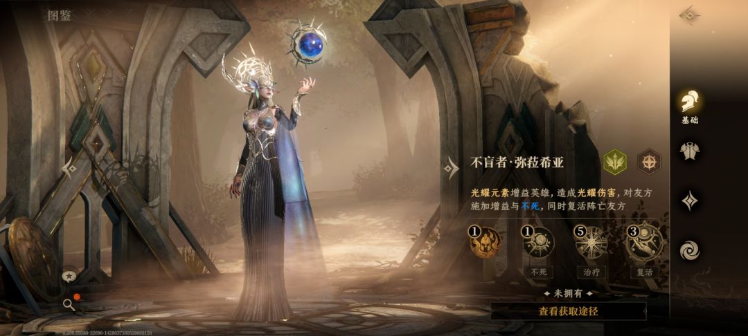 稀有ssr,开局附带不可驱散的全域百分之30降低攻击。自身会根据时间增加生命最大值,并以生命最大值的一定百分比增加全体队友生命回复速度。大招带有暂时唯一的群体治疗反转debuff。