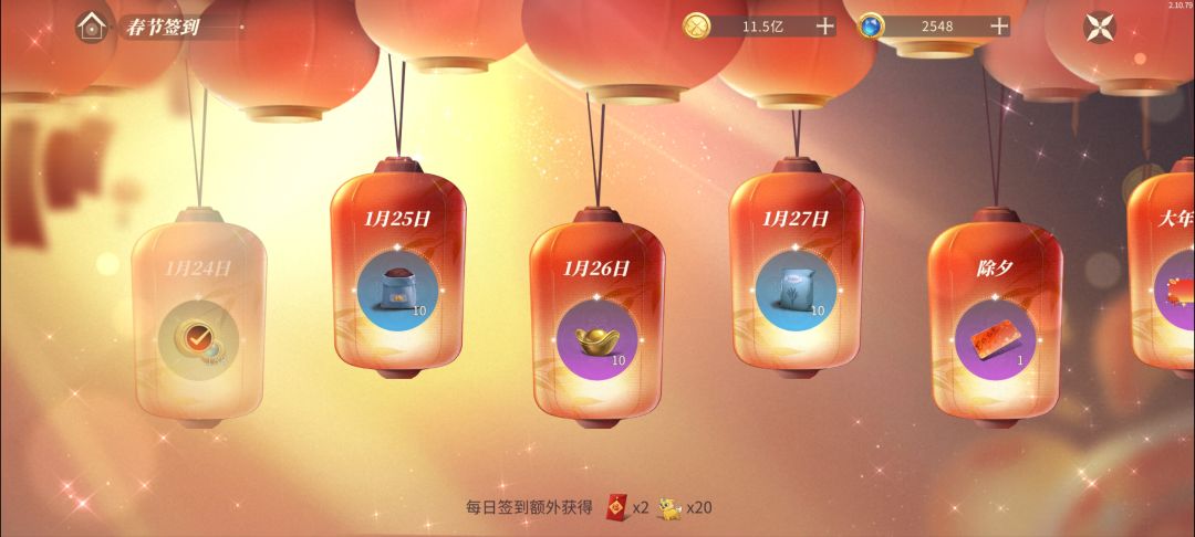 PS:每日签到,额外获得“春节红包”、“岁兽”。