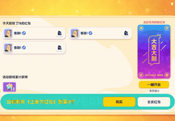 肠友发红包,欢喜拜大年~在春节活动期间,肠肠还可以给其他玩家发放红包或者拾取其他玩家发放的红包!