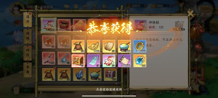 ),先说年兽掉落的福袋奖励,杂七杂八的给了很多,最重要的就是龟甲 神兵 神侠令 侠影,如上面我在大群找到的图,奖励巨香白嫖很值得,怎么获得最多的福袋这就有说法了,每个年兽只摸一次,一天摸个六七次,只要在前20名就有1400丹和8福袋 而且年兽死的次数越多抗击给的福袋也越多,第一天是抗击一次9个,第二天已经是13个了,所以前期可以用这种方式多模点奖励