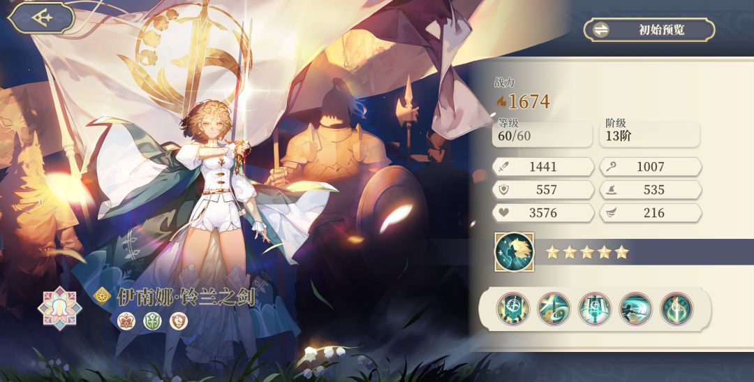 - sp伊南娜的速度只有216,如果希望在首回合让在她之前行动的队友吃到光环的话,在这种情况下,带【在铃兰的旗帜下】比带【铃兰战旗立于大地】更好。