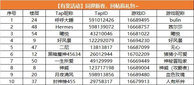3、本活动禁止刷楼,每个TapID仅可中奖1次,不可重复获得,如对回帖的内容不满意,可点击原楼层进行修改;
