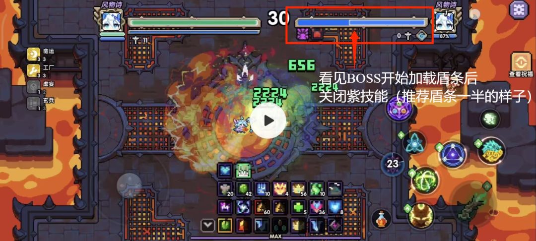 2.关闭紫技能的时机,选取在BOSS开始加载盾条(透明的那一条)后至加载完毕前。
