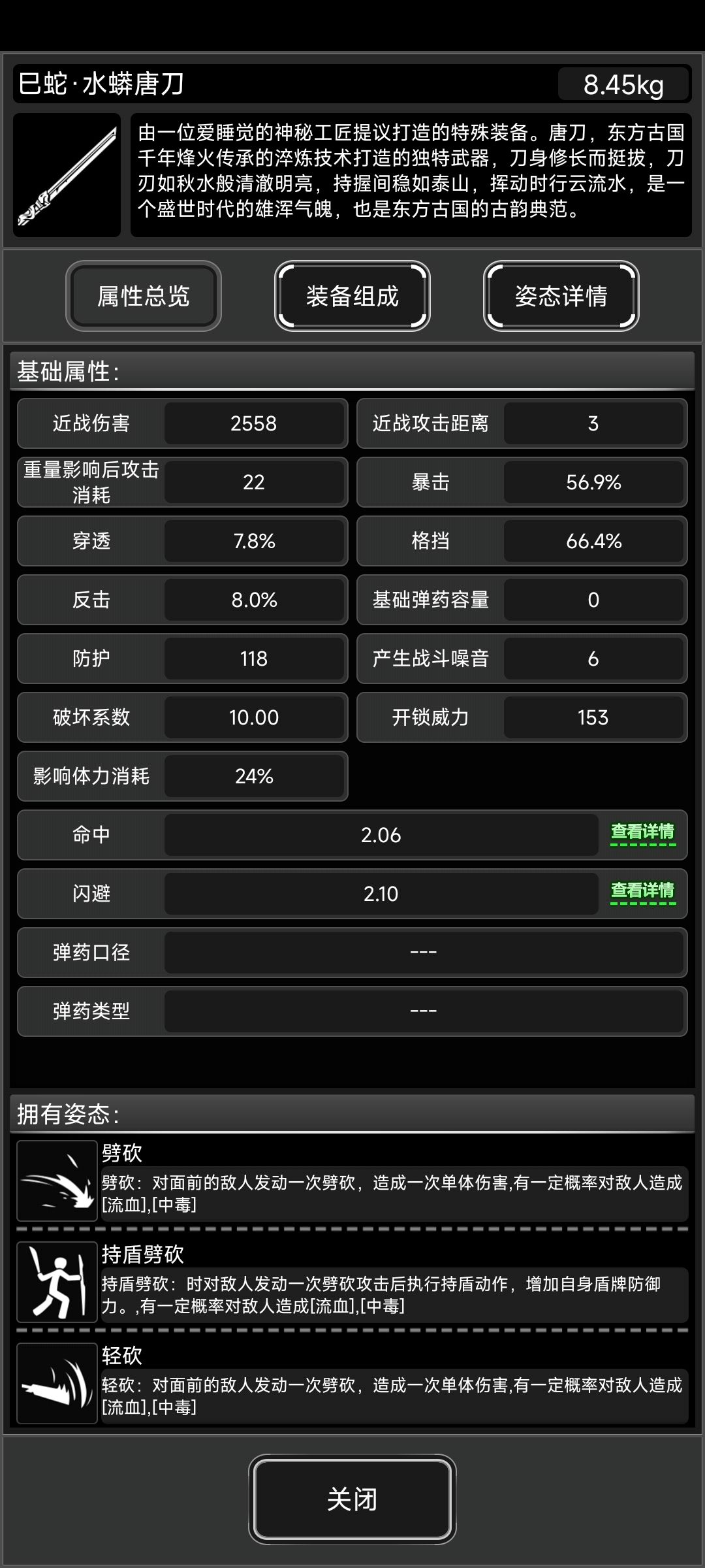 备注:刀法秘籍不增加属性只增加类居合的技能,不用重复装配。