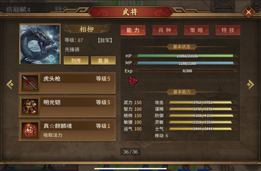 轩辕刘备: 带木牛方便跑路,其他随意,主要当个万金油用。我几乎没吃属性特技,如果吃的话,可以少吃很多果子。主要特技是万人+先手+锐。3k面板。