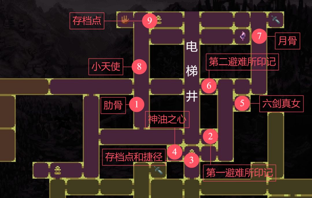 然后从右边的门出去,过一个天桥进入右边的房间,下两个梯子从左下角的门进入存档点。