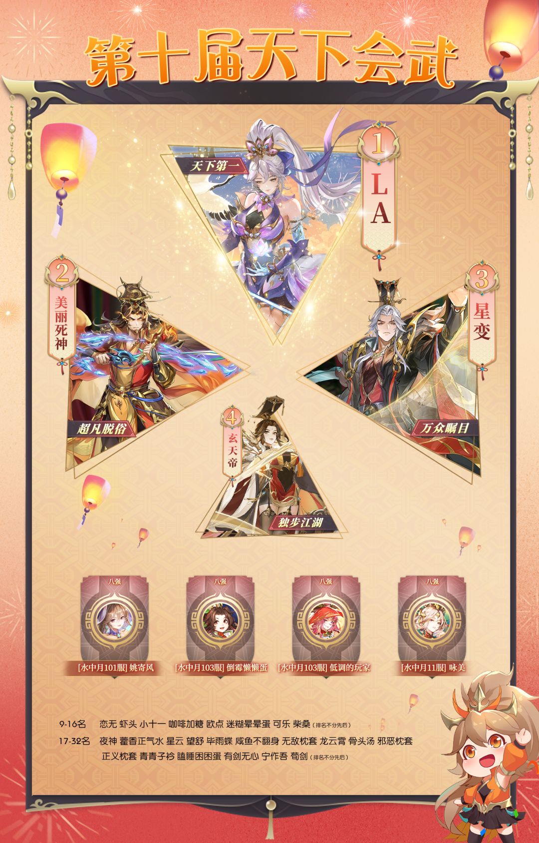 镜中花11服——LA登临王座,成为第四个天下会武活动的冠军得主,也是镜中花大区的首位会武冠军