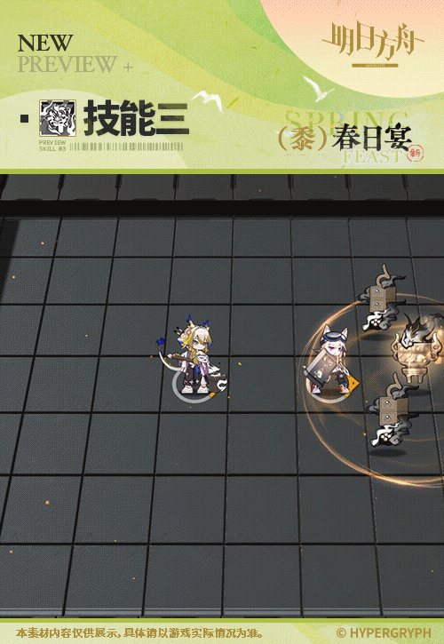 基建动作和立绘动效都比较一般,立绘二的色彩衔接参考原版精二立绘,但缺少惊艳感,好在三个技能的动作都基于石臼重新设计过,这点还可以