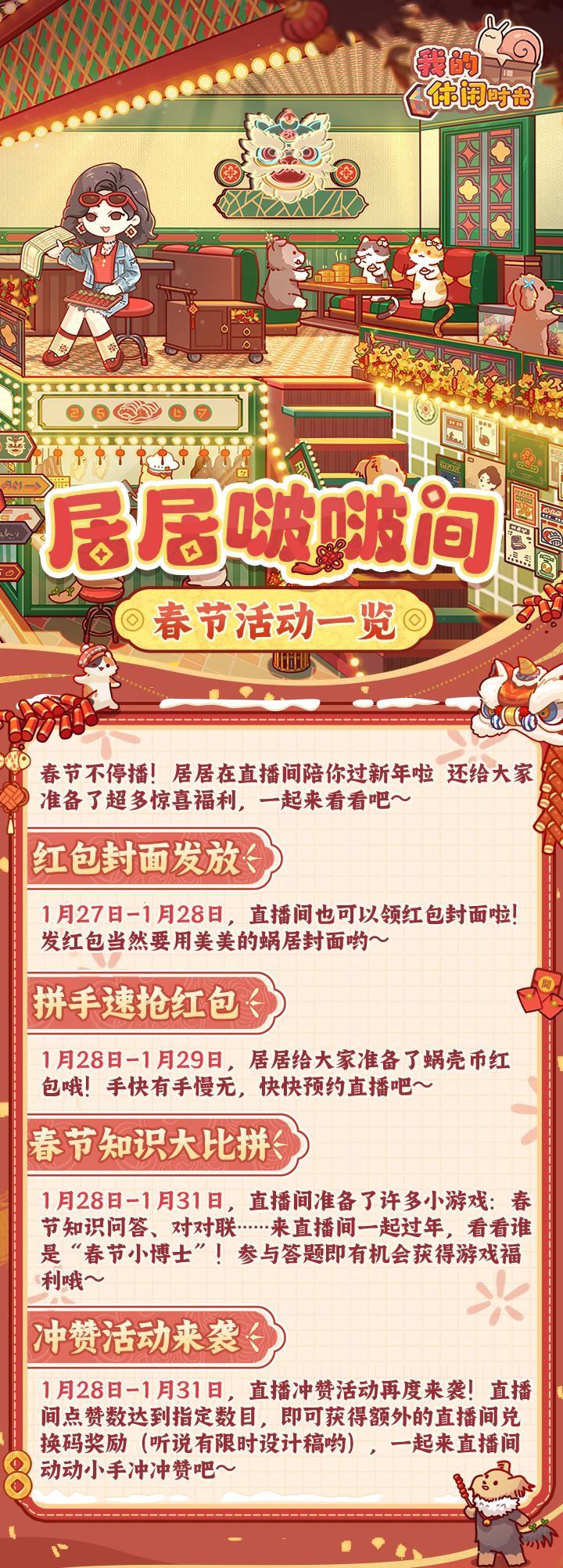 期间更有游戏周边随机掉落,一起来直播间和居居以及其他蜗友共度新春吧!
