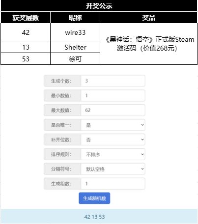 一:第一轮抽取三名玩家,可以获得一枚《黑神话:悟空》正式版Steam激活码(价值268元)