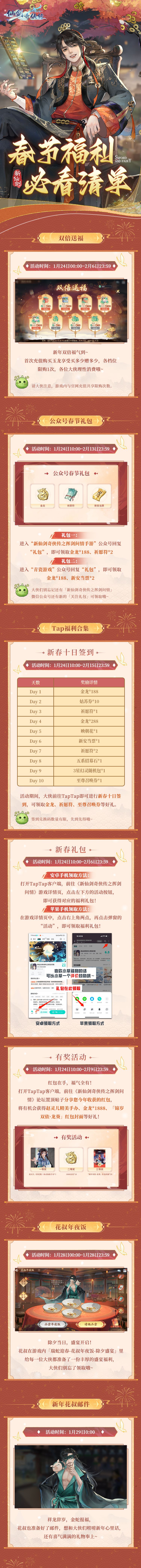 生效时间:1月24日~3月31日,在游戏内点击设置-礼包兑换输入上方文字后,即可领取奖励,密令在光子服、官服、B服均可使用