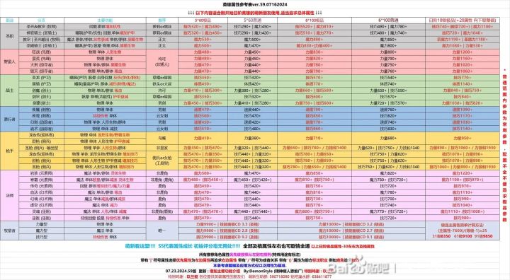 重点:以上表格的属性是给毕业进度的老咸鱼内卷用的,对前中期玩家没有任何参考意义,小萌新只是给大家一个大致的参考,新玩家只要模型对了即可,不必追求高属性!!一般来说即使英雄属性不及格也是可以毕业的。