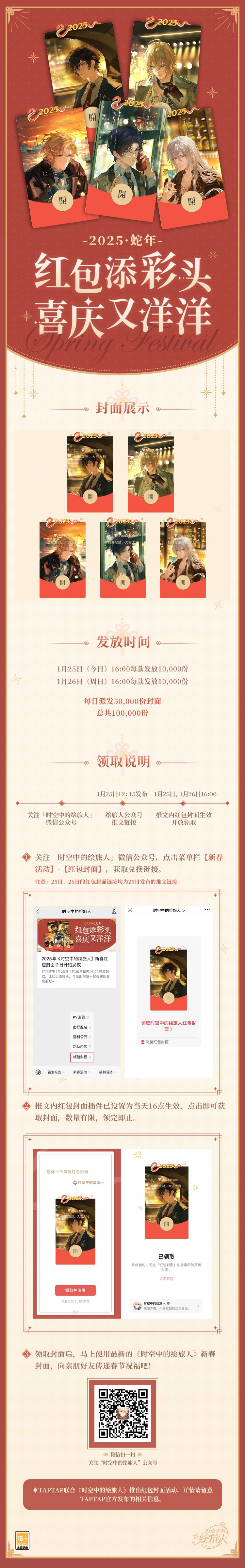 ★2025年《时空中的绘旅人》新春限定红包封面今日开始发放!让红运添彩头,与亲朋好友一起传递新春祝福吧~