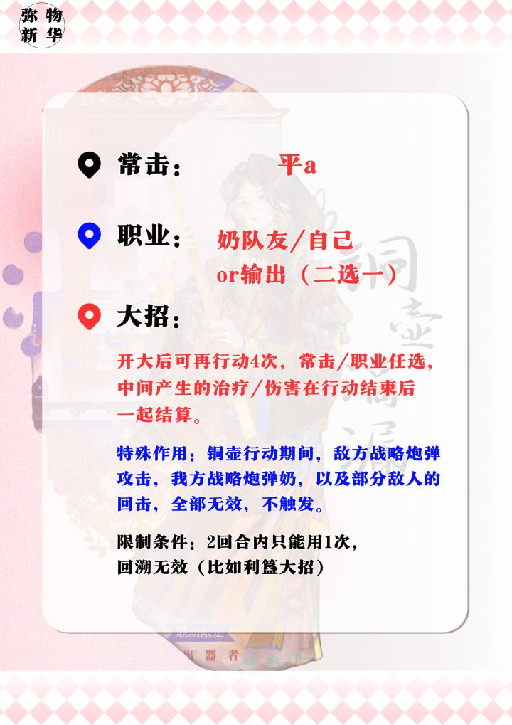具体战局表现是这样的:开局,铜壶满能开大,常击结束后,是常击+1点&深造恢复+1点;第二回冷却,同样是常击+1点&深造恢复+1点;第三回冷却结束即可开大。如果选择职业,是不加能量的。