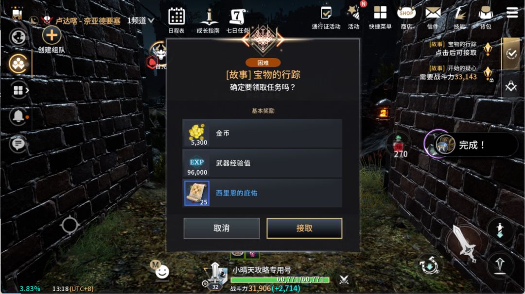 2、快速升级:王国任务、试练塔、每日任务、支线任务