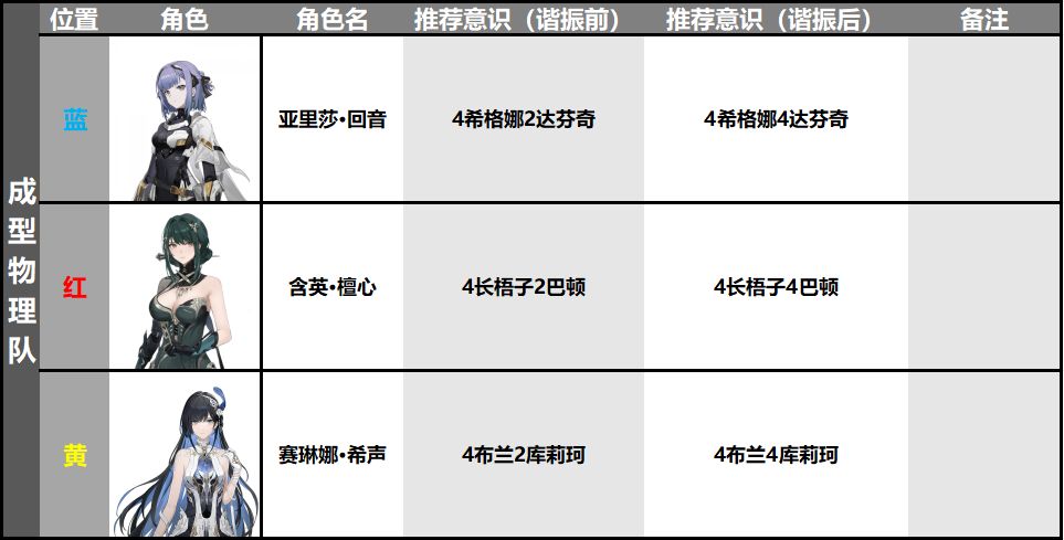 组成成员为:希声、明晰梦、回音(已跃升),搭配推荐如下
