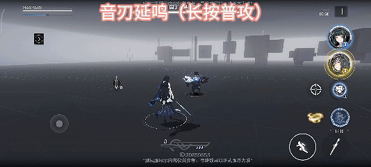 当希声持有至少一点音符时可以长按普攻持续消耗音符释放音刃延鸣,对敌人造成多次斩击伤害并进入超算空间,斩击带有格挡判定,格挡成功将立即消耗所有音符完成斩击。