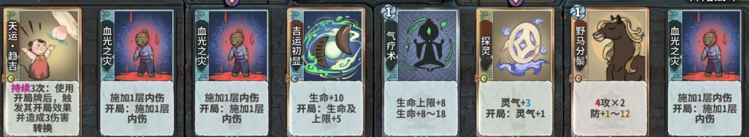 练气和筑基尽量不d牌,发什么就用什么,通过抢先来尽量获得优势和被动计数,道韵选择杯弓蛇影和厄劫缠身,其他的尽量不要,前期的修为很重要