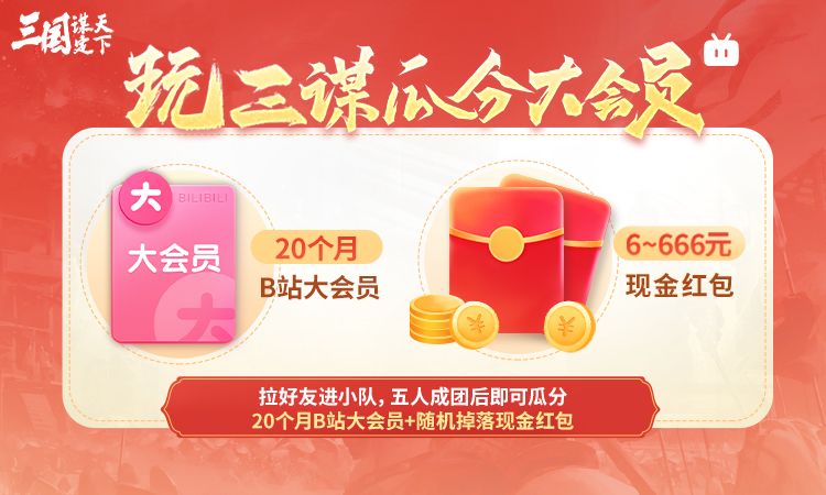 5人成团后可瓜分20个月大会员+随机掉落6 - 666元现金红包