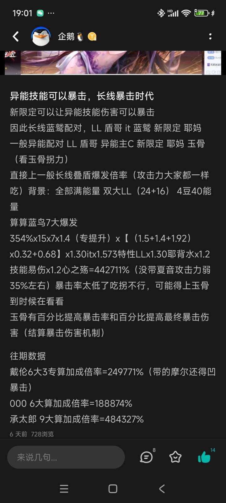 本人活跃在凹分群,算是熟知各种禁闭者数据,也懂伤害计算,手持也是满拐228狂的高配耗子,各位有什么想算的数据都可以在此贴留言,有空就进行计算更贴,有无期相关疑问也可以留言,必回复