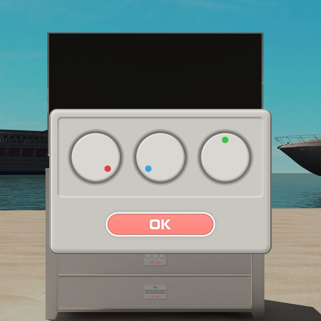 6.点击椅子上的人边上的箱子,拿到一本红色的护照,再根据三本护照上的信息:红色(日本)、深蓝色(英国)、蓝色(美国),打开边上的红色盒子,拿到机票,把机票给椅子上的人。