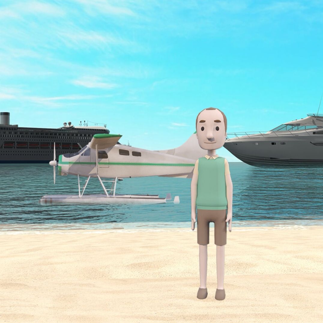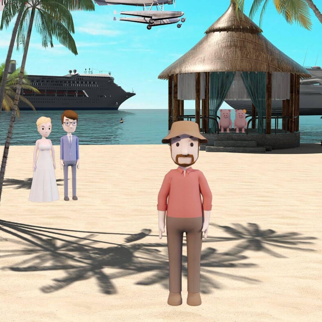 13.把相机给红衣服的人,根据相机照片上的四个角,打开沙滩上的黑色箱子,拿到一盆花。