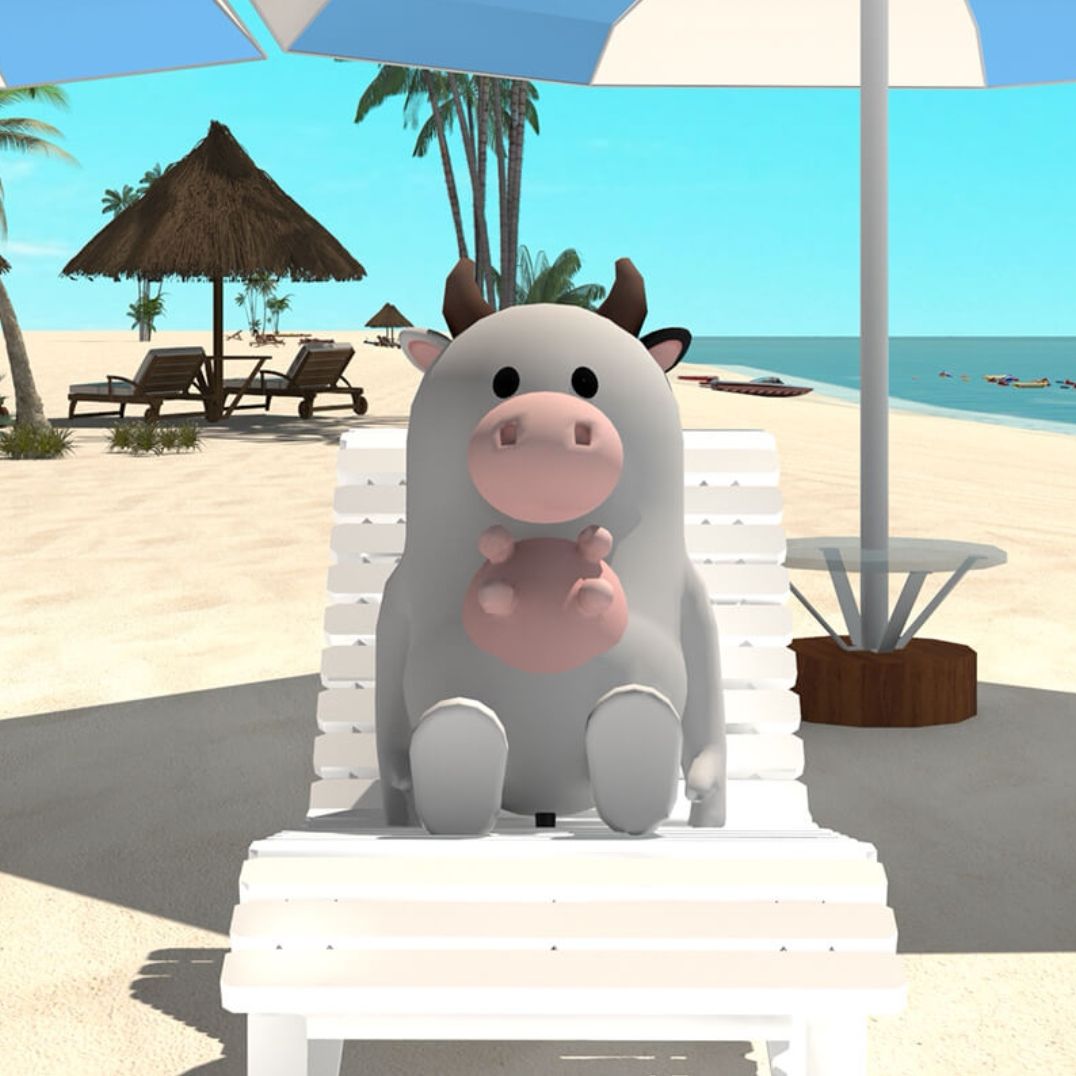 17.把沐浴露给沙滩躺椅上的牛,可以得到粉色衣服边上的绿色盒子的密码:熊猫、鹿、奶牛、斑马,打开拿到一双红色高跟鞋。