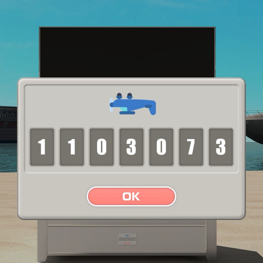 11.把飞行面具给海边的飞行员,得到一串英文,重点关注红色的,再根据电视下方的第四个柜子上的提示,可知要倒过来看,得到数字:1103073,打开拿到一条裤子。