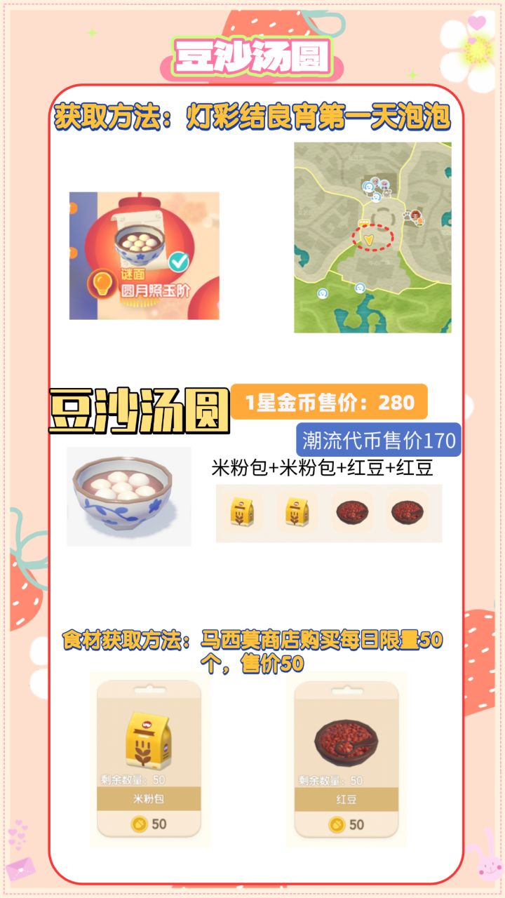 常驻新食谱:豆沙汤圆 米粉包+米粉包+红豆+红豆,潮流币1星170