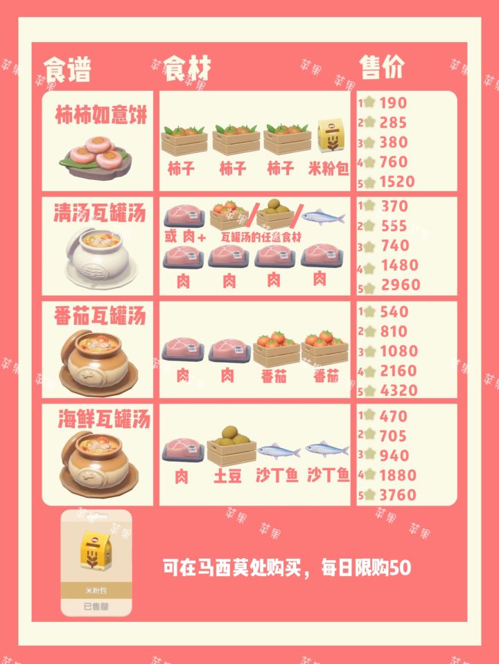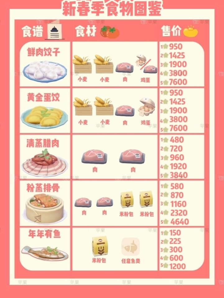 新春季限定食谱,以及隐藏食谱所需食材如图