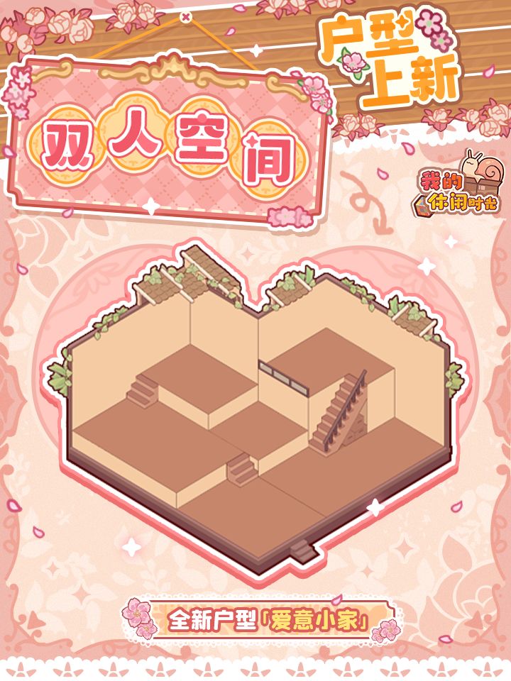 全新户型「爱意小家」即将上架!届时小蜗们可以前往「双人空间」-「房产购买」进行购买,该户型同样支持AA购买哟~(即:总价为金币*16000,双方可各出金币*8000拿下!)