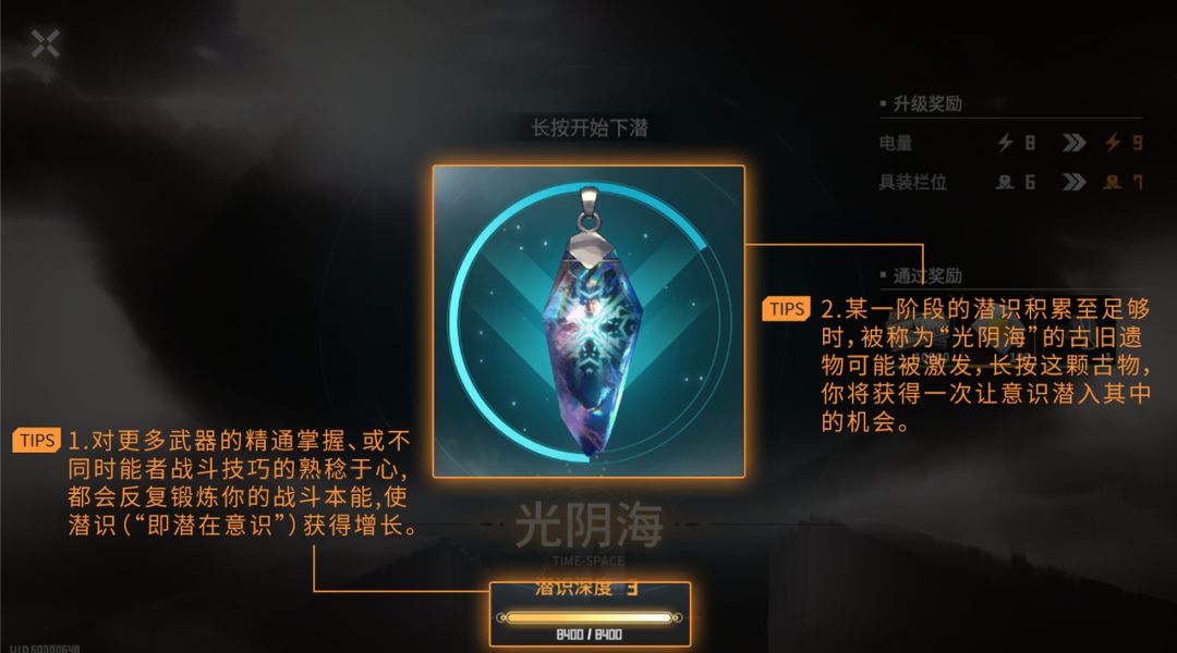 潜识即潜意识,涵盖我们最需要的战斗本能。潜识深度则代表这一本能的精深程度,如对武器的熟练掌握、不同套装战斗技巧的精通。提升武器或套装等级,从中获得潜识的增长,进而有资格迈入更强力装备的使用门槛。注意,当武器、套装到达满级,或经过【相位变换】重置等级之后,便无法再从它获取潜识。因此,想要持续增长潜识深度也意味着战斗员们需要不断尝试新的武器装备,接纳不同时能者。