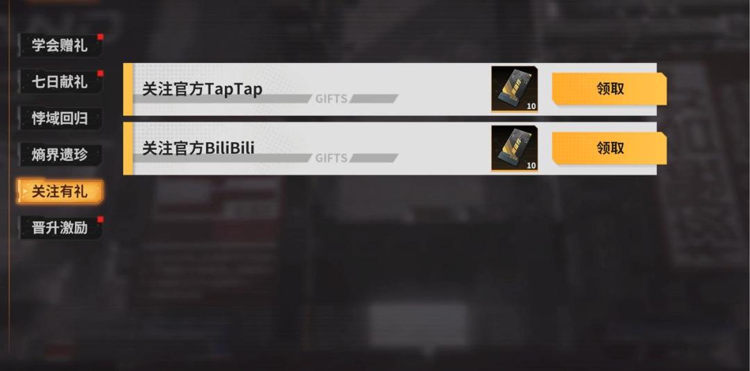 通过活动奖励获得游戏内活动页面有丰富的奖励等待领取,学会赠礼、关注官方社交媒体,以及参与TapTap站内累签福利,都可以获得!