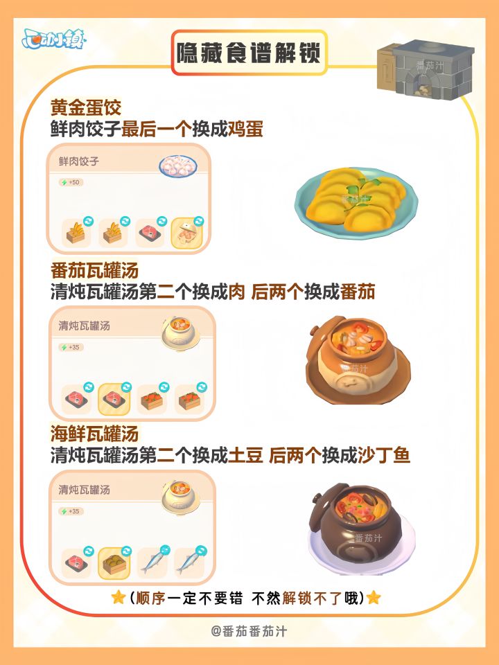 还有三个隐藏食谱哦 黄金蛋饺 番茄瓦罐汤 海鲜瓦罐汤