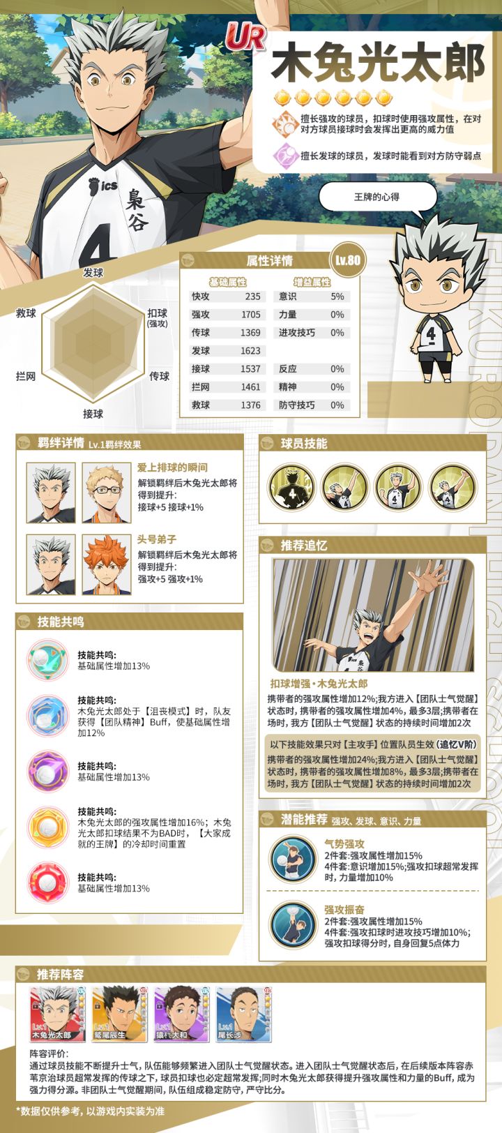 🦉想招募却不知道如何养成?一张图带你全面了解「木兔光太郎(WS)」的强力羁绊、推荐阵容、技能共鸣!